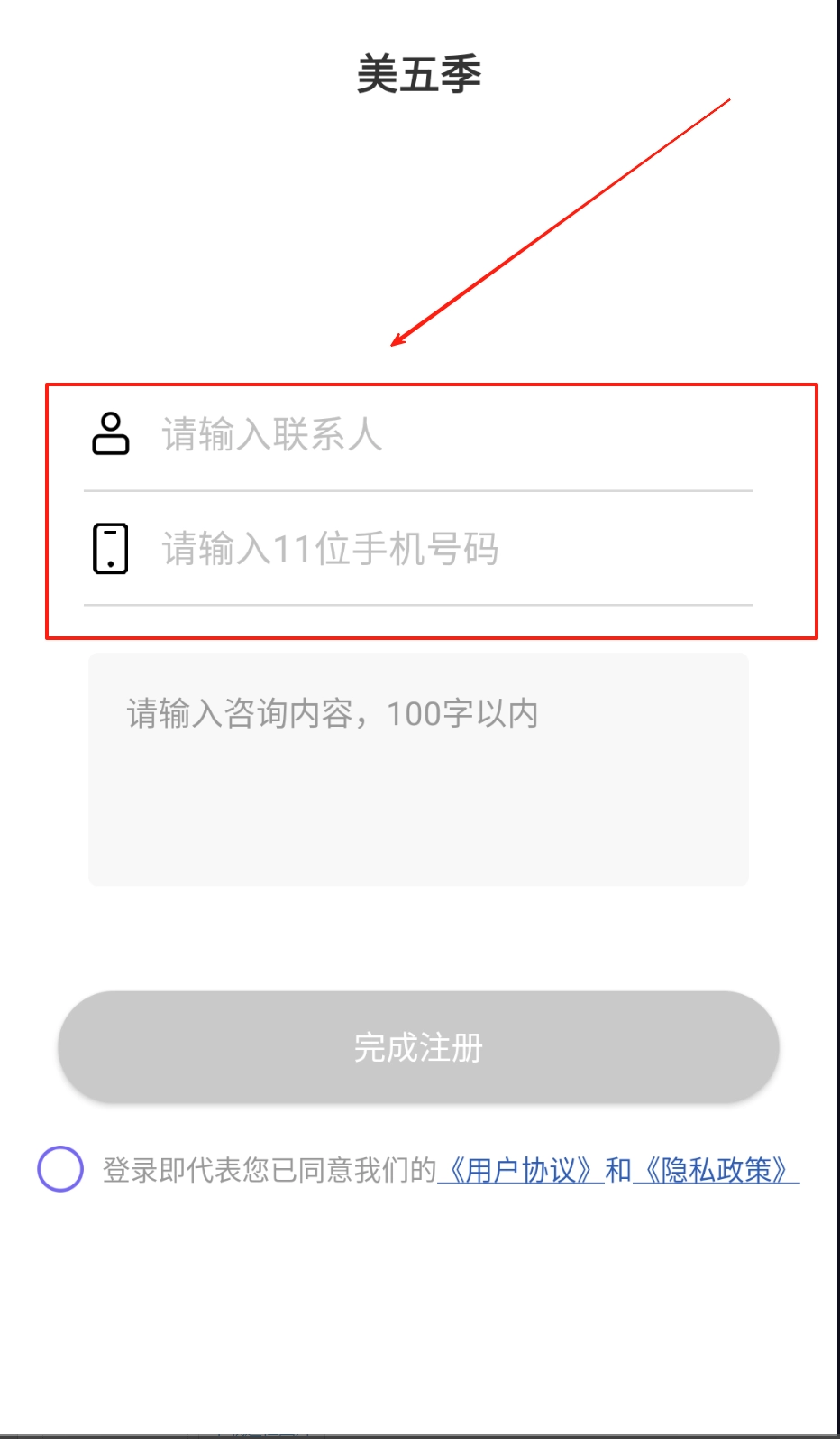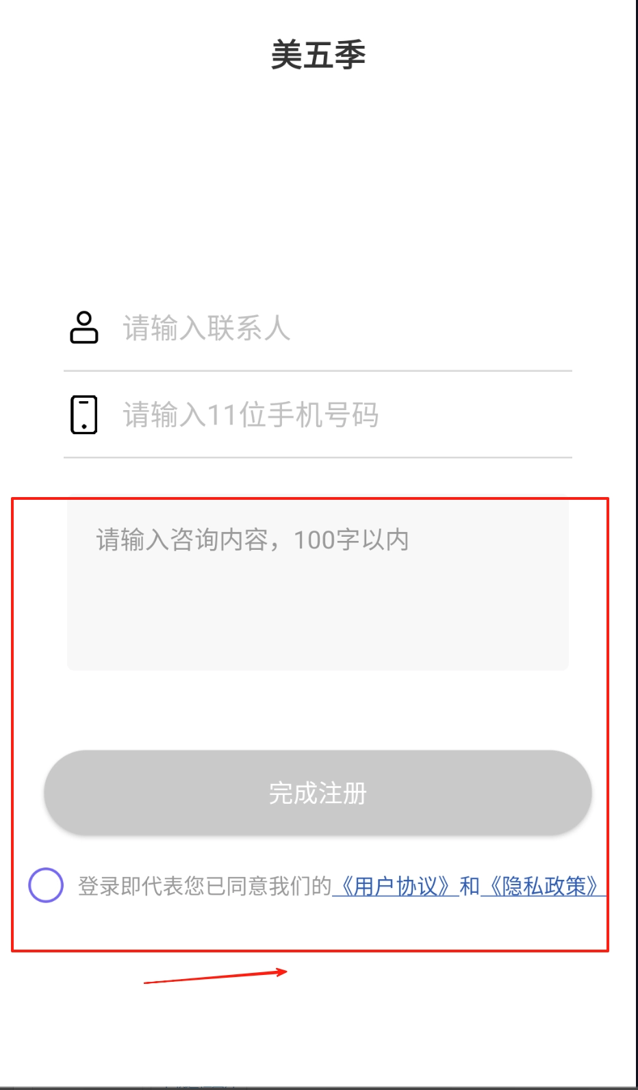填写咨询内容请控制在100字以内,勾选左下角的协议条款,确认信息准确无误后,点击蓝色的“完成注册”按钮提交申请。