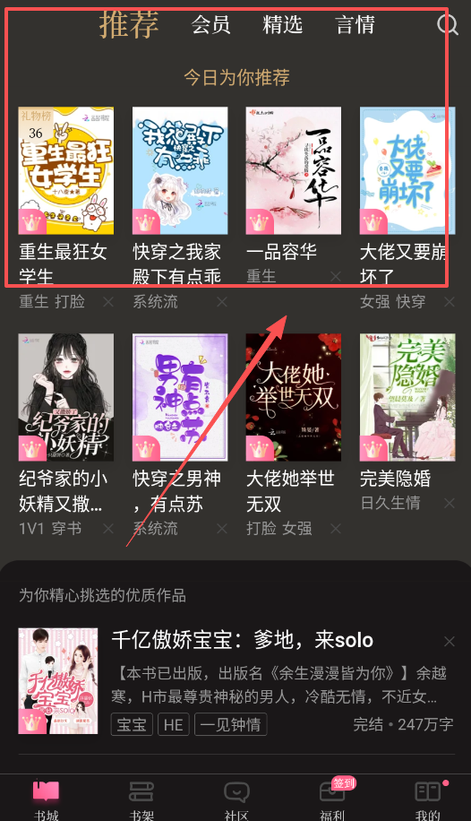 首页推荐就像专属于你的个性化书库,它会依据你的阅读偏好,为你推荐类似《大佬又要崩坏了》这样的作品,帮你轻松找到心仪的故事。
