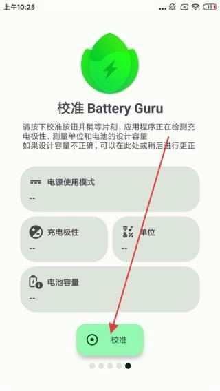 打开BatteryGuru电池大师应用,然后点击界面上的【校准】按钮。