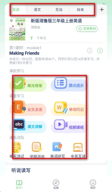 4. 单词听写增强记忆,课文跟读练流利英语。