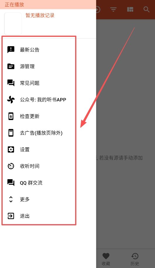 收藏功能可以帮助你整理已收听的内容,要是想找回之前听过的内容,通过历史记录就能实现。要是现有的书源不够用,还能手动添加源文件来扩充资源库哦。