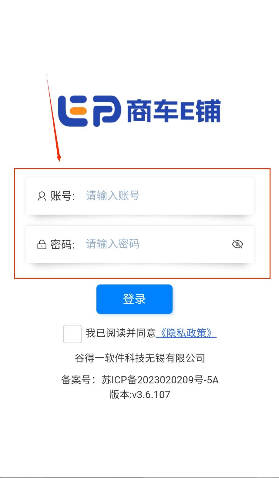 是面向车商用户推出的移动端综合业务管理系统,致力于帮助车商实现整车销售与售后维修等核心业务流程的全面数字化。通过该应用,用户可高效处理订单跟进、客户管理、维修派工、库存查询及财务对账等日常工作,大幅减轻传统手工操作带来的繁琐压力。打开商车E铺软件后,首先映入眼帘的是登录界面,界面最上方是采用蓝橙配色设计的商车E铺logo,中间位置则设有两个输入框。