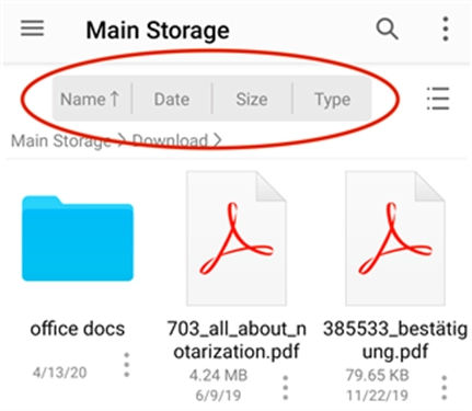 文件可以按名字,日期,大小和类型并以降序或升序的方式排列。
