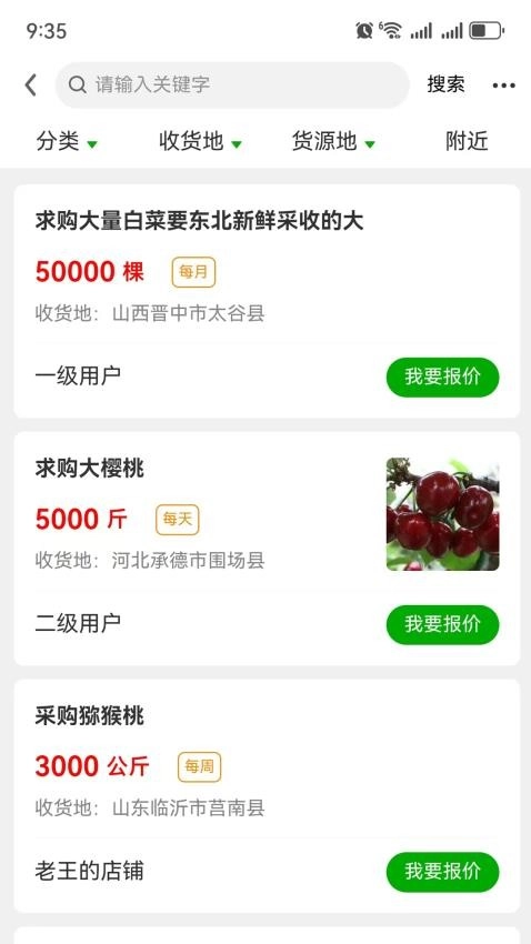 是一款专注于农产品交易的专属电商服务软件,设有专属需求大厅,用户可根据自身需求筛选农产品,便于精准求购所需产品,在平台上轻松完成下单与抢购。支持对大量采购的农产品进行一键报价,用户可依据预算成本提出报价,获取准确价格信息并掌握市场行情。此外,还提供线上农业展会服务,可阅读农业资讯、浏览农产品展会内容,满足多样化需求。进入平台后,您可以通过需求大厅、农药等功能入口,或者种子、农资农机等分类板块,快速定位到想要采购的各类农业相关商品。