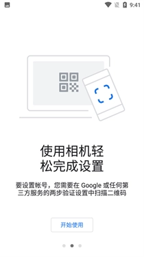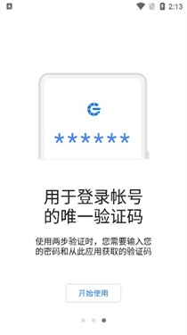 1、打开谷歌身份验证器安卓手机最新版后点击【开始使用】。