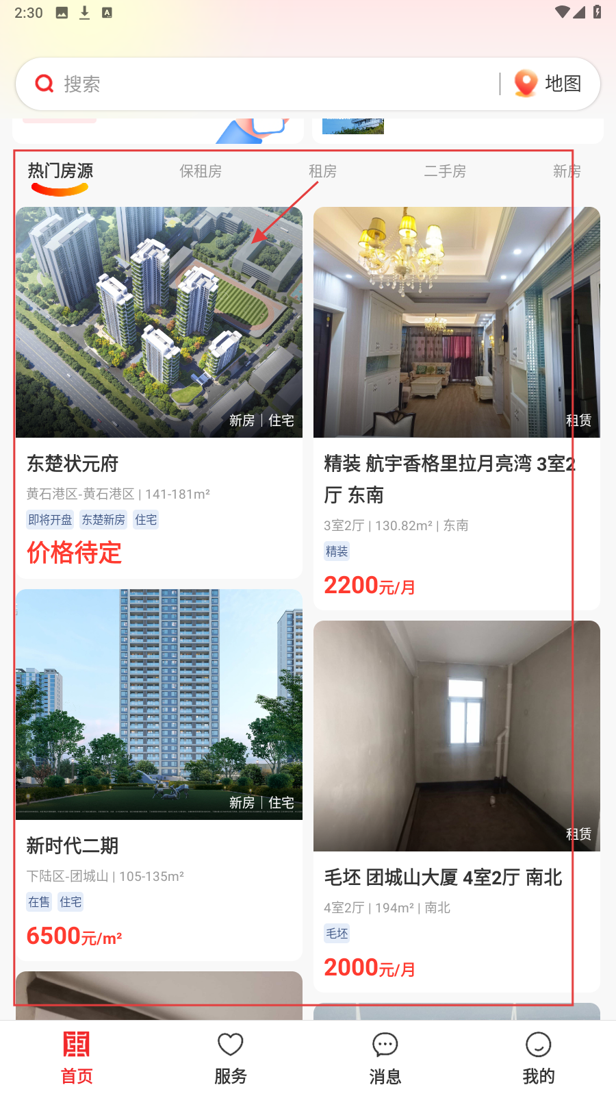 想要查找新房、二手房等各类房产,可点击首页的【新房】【二手房】等对应入口,以便快速筛选所需的房产类型。