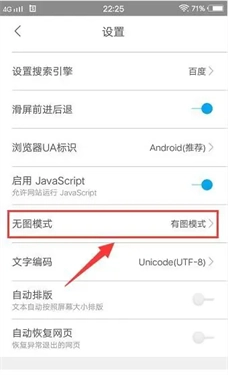 3、在设置页面,用户点击选择【无图模式】选项。