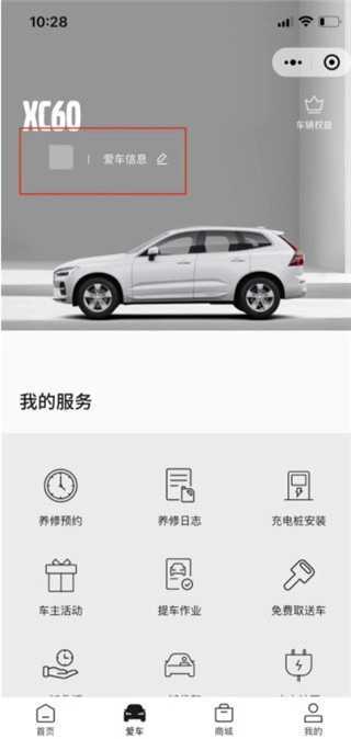 1、第一步,我们用自己注册的主账号登录沃尔沃汽车世界平台,接着点击“爱车”板块;