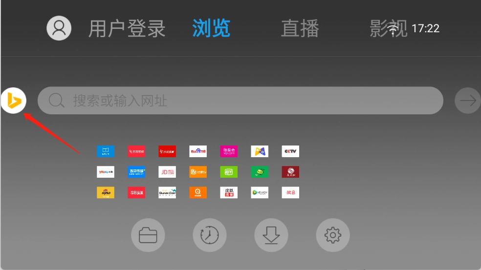 2、进入首页后,能看到默认显示的是百度浏览器,此时点击百度图标即可。