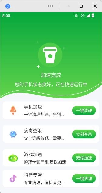 2、手机加速功能,能够帮你迅速释放手机内存空间,同时及时关闭后台正在运行的程序。