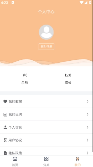 4.点击页面底部的“我的”选项,就能查看我的收藏、已购内容以及个人信息等相关内容。