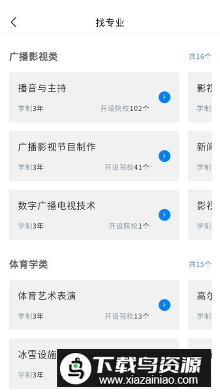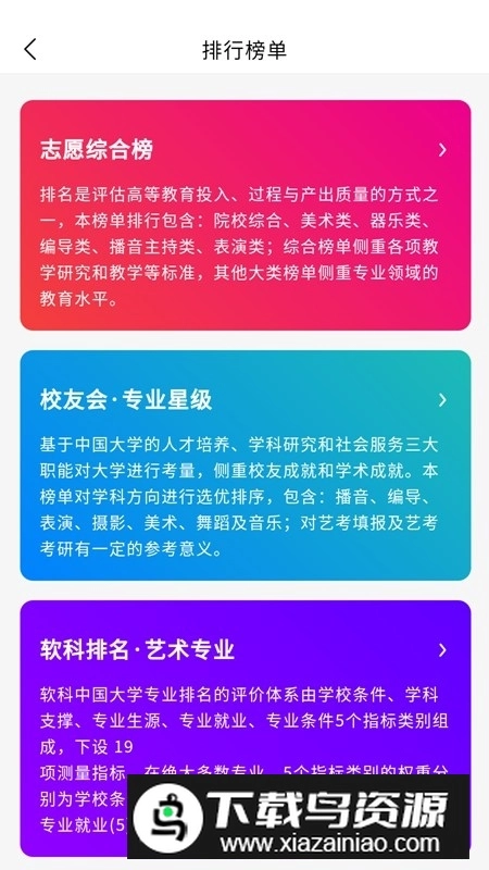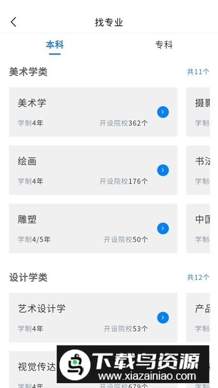 2.专业查询:可按艺术类别和学科方向智能检索适合的专业;