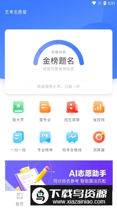 艺考志愿星安卓版是一款专门面向艺术生的志愿填报辅助工具,它汇集了全国众多院校的招生资讯与专业相关数据,可协助考生迅速查找自己感兴趣的大学及专业,知晓历年省控线的变动走向,并且提供详细的招生简章以及各类专业排名榜单作为参考,使原本繁琐的报考流程变得清晰易懂,帮助艺术生科学规划升学路线,轻松确定理想的目标院校;要是觉得这款软件好用,欢迎在本平台进行使用。
