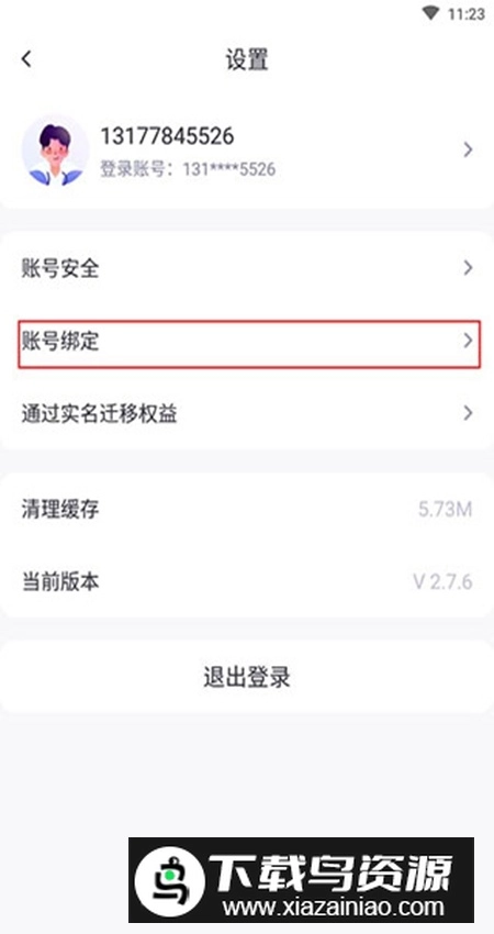3、在设置菜单中找到并点击【账号绑定】选项。