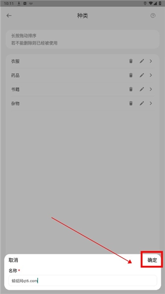 跳出页面中输入添加的种类名称点击下方确定。