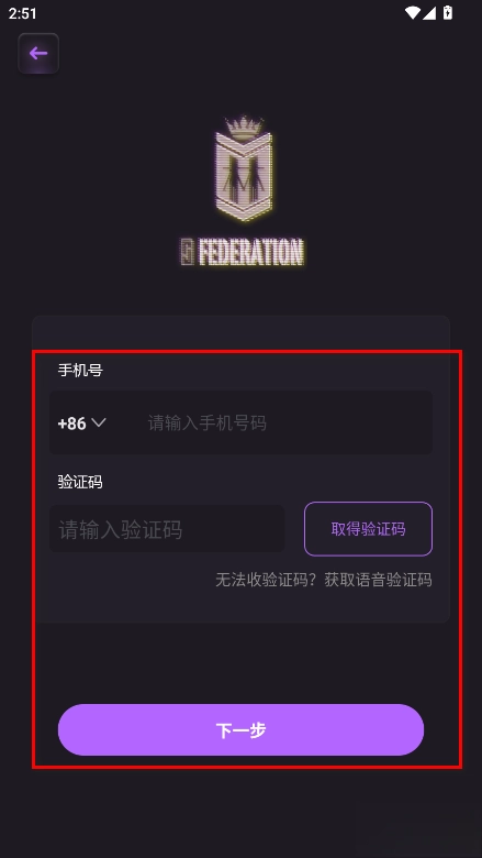 4.先输入手机号码和验证码,点击“下一步”后,再依据软件给出的提示完成注册操作就可以了。