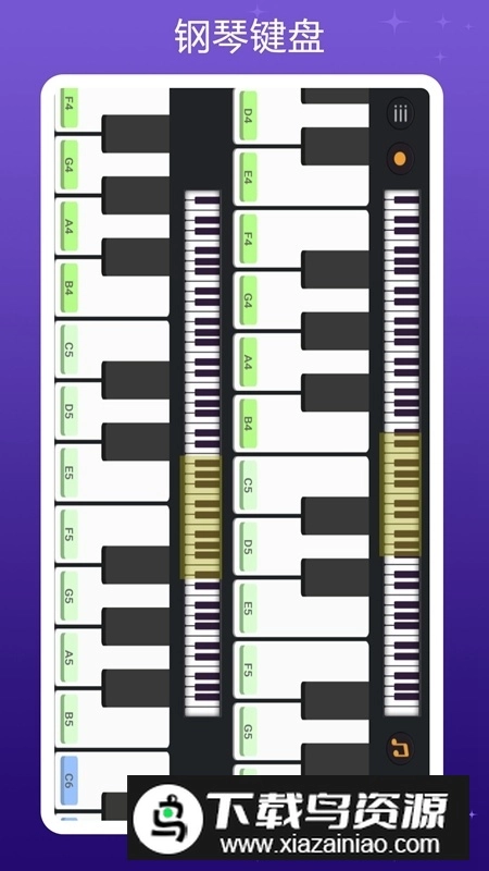 2.完整再现88键钢琴键盘,每个琴键对应独立音源;