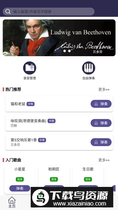 钢琴键盘模拟器手机版是一款仿真度极高的钢琴模拟应用,它精准复刻了真实钢琴的触键反馈与音色细节,让你在手机上也能畅享弹奏钢琴的乐趣;应用多首经典钢琴曲谱且持续更新曲库资源,同时配备实时录音功能,便于记录你的每一次演奏瞬间;不管是日常练琴还是即兴创作,这款工具都能满足你的需求,助你随时沉浸在音乐的世界里;感兴趣的话就来本站下载体验吧。