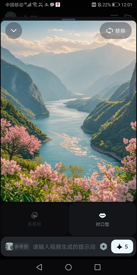7、随后等待视频自动生成,需要说明的是,由于本次使用的图片中没有人物,若素材包含人物,系统会额外执行更精细的口型匹配步骤;视频生成完成后,就能将其保存到本地设备或直接分享出去。