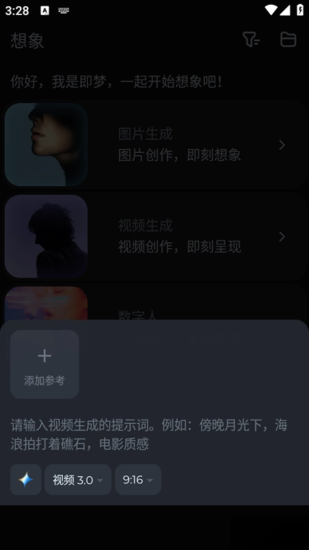 1、用户首先通过抖音账号登录即梦AI手机版应用,接着在【想象】页面中点击顶部的输入框