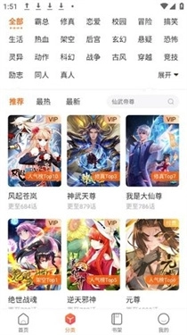 4、用户能够依据自身的喜好与兴趣,挑选不同的漫画分类开展浏览。
