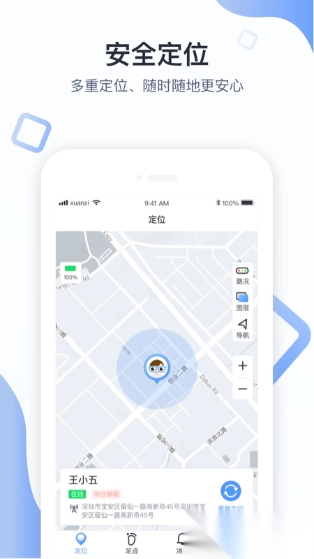 1、支持家长自定义安全区域,孩子一旦离开该区域,系统将立即发送提醒;