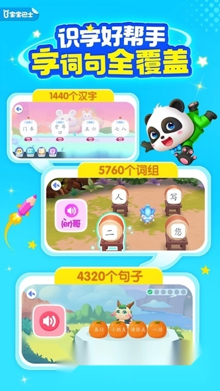宝宝巴士汉字免费版专为幼龄儿童打造,通过生动有趣的互动方式引导孩子接触并掌握汉字。软件融合了丰富的动画故事、轻快音乐与趣味游戏,充分激发孩子的学习热情,让识字过程变得轻松愉快。如果喜欢这款应用,不妨在本站体验。
