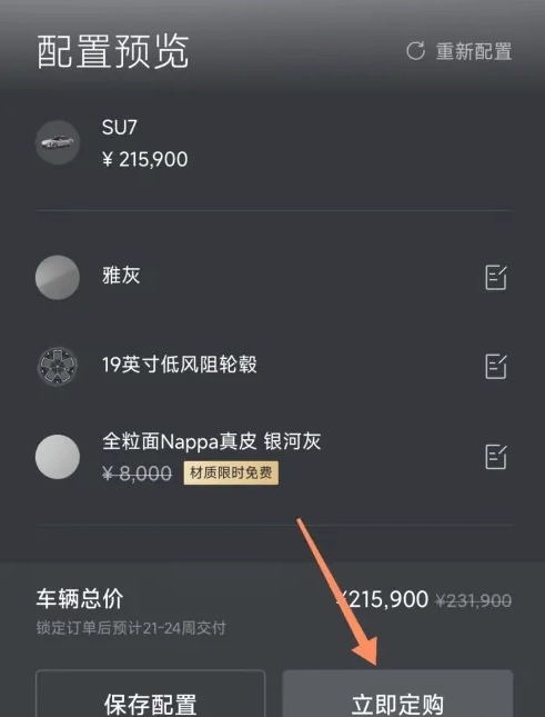 :随时随地掌握车辆的情况并进行远程控制,带来车辆防盗报警功能和实时监控功能,让用户更放心体验。打开小米汽车,选择车型款式以及配置。