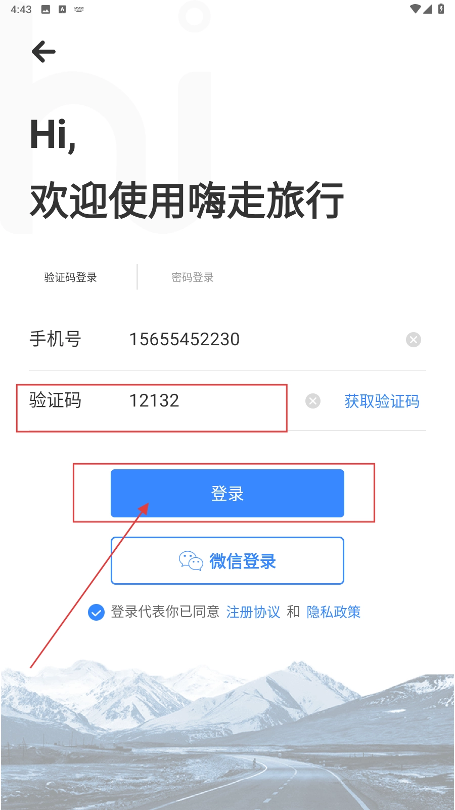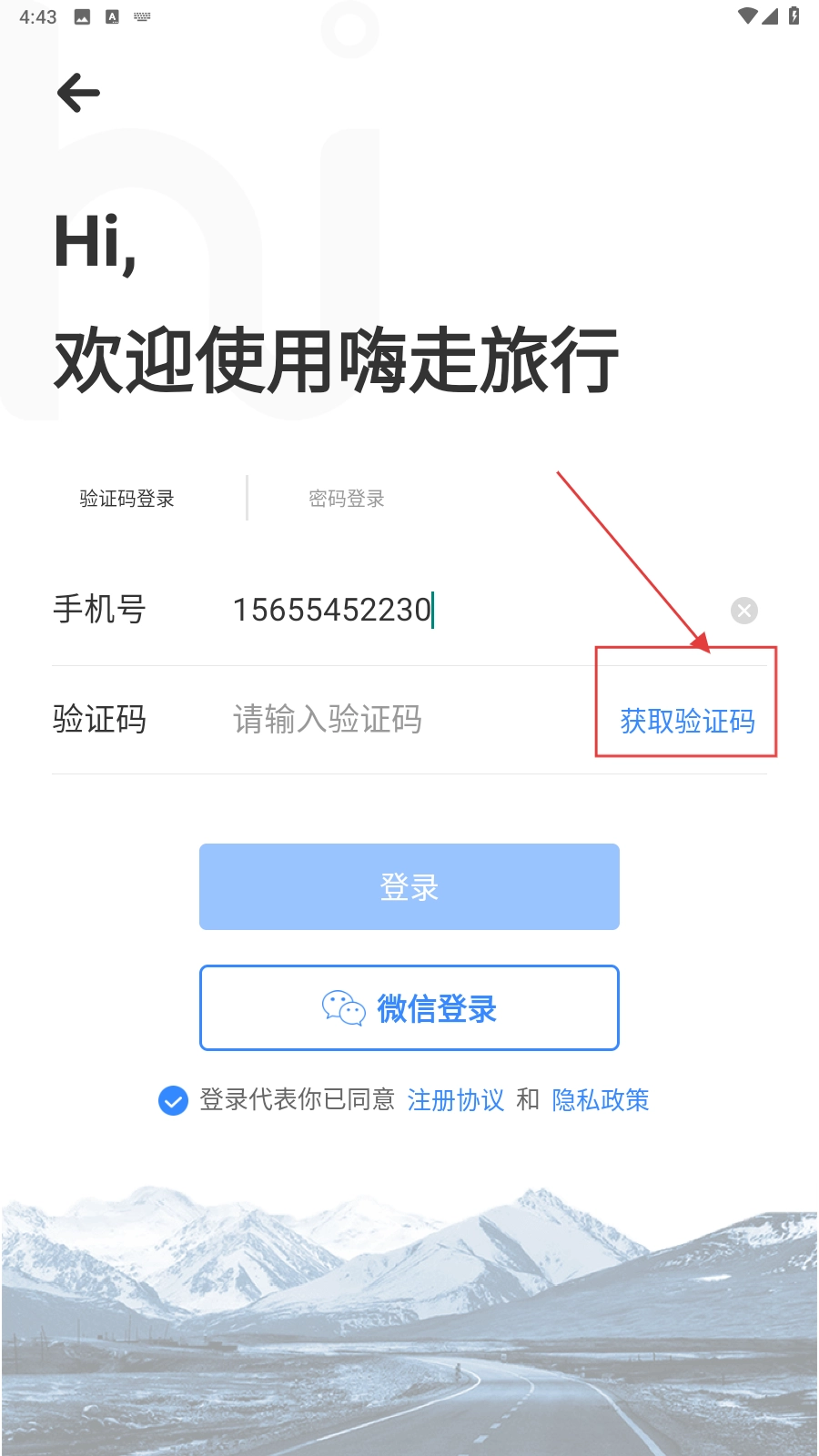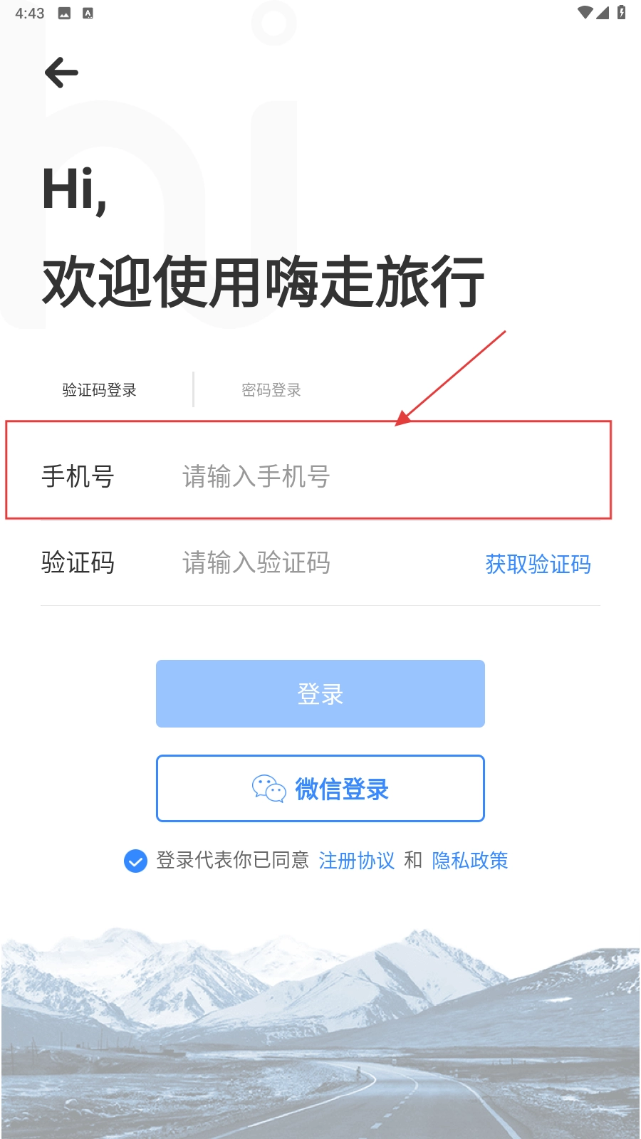 打开应用,填写手机号。