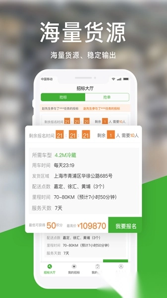 这是一款聚焦同城配送服务的互联网平台,汇聚了丰富的本地货源信息,借助公开竞价与招标模式,为司机提供真实可信的货源;平台设有多个实用功能模块,助力司机高效管理订单,提高接单和配送的效率。