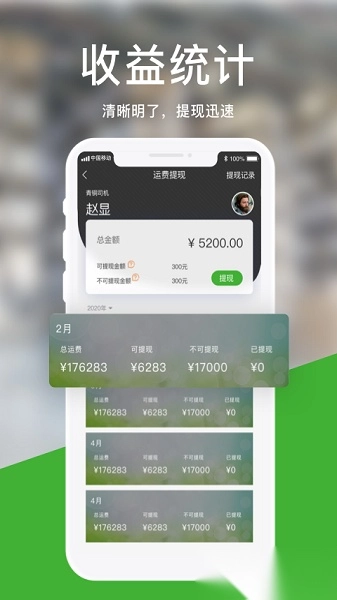 3. 收益明细统计详尽,按月、按订单展示每笔收入数据。