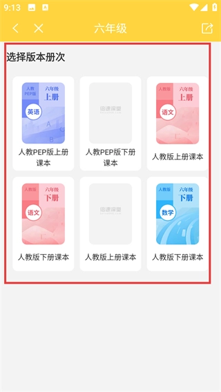 进入练习页面后,挑选对应的年级(像六年级这样),就可以进入该年级的版本册次选择界面啦。