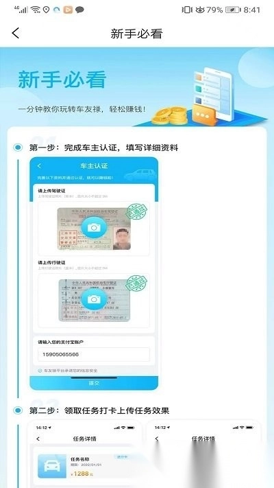 这是专为车主打造的福利平台,车主用户可以领取各类任务并完成打卡;依据任务内容的差异,用户达成目标后就能获取相应奖励。