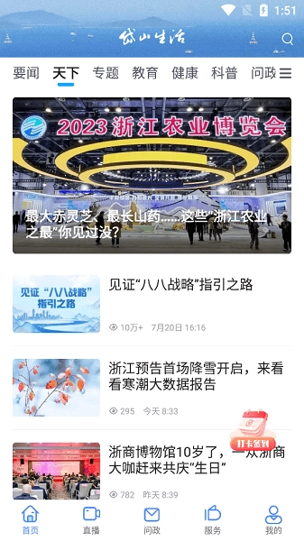 打开应用就能浏览包含时政、民生、社区动态等多样本地新闻内容,及时获取岱山县融媒体中心等权威机构发布的真实可信信息。