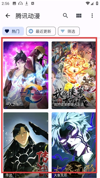 进入【腾讯动漫】的资源页面后,可以看到《一人之下》这类作品,选择想要查看的作品就能进入其详情页面了。