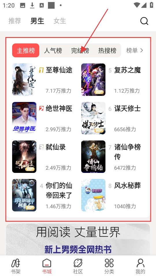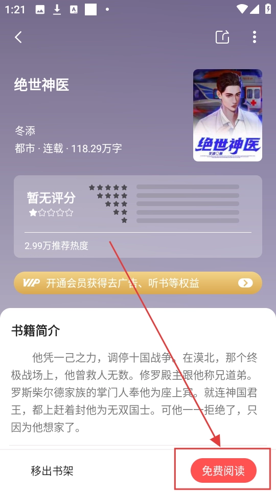 在书城页面,点击榜单里的书籍(比如《绝世神医》),就能进入书籍详情页了。