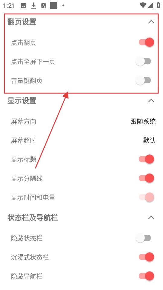 在设置页面,你可以调整翻页相关的设置,像点击翻页、音量键翻页这些选项都能根据自己的喜好来设置。