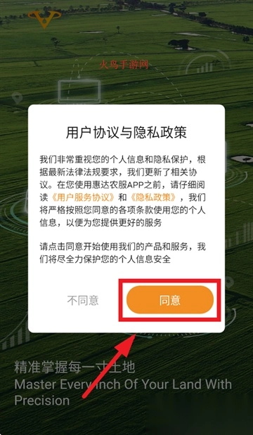 并安装惠达农服,打开后首先阅读并同意用户协议与隐私政策。