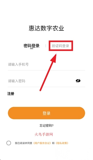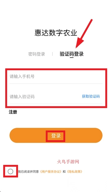 输入注册手机号及收到的短信验证码,勾选同意用户服务协议和隐私政策,点击登录按钮完成操作。