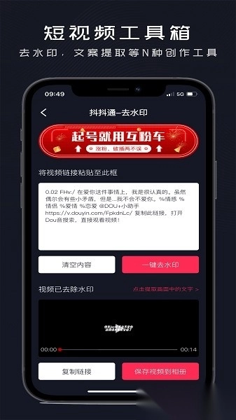 1. 短视频工具箱提供去水印、文案提取等多种实用功能;