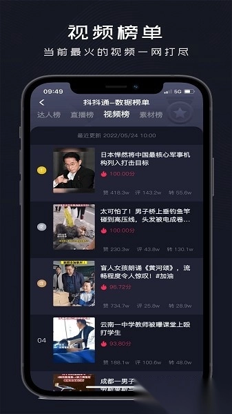 3. 视频榜单实时收录当日热门内容;