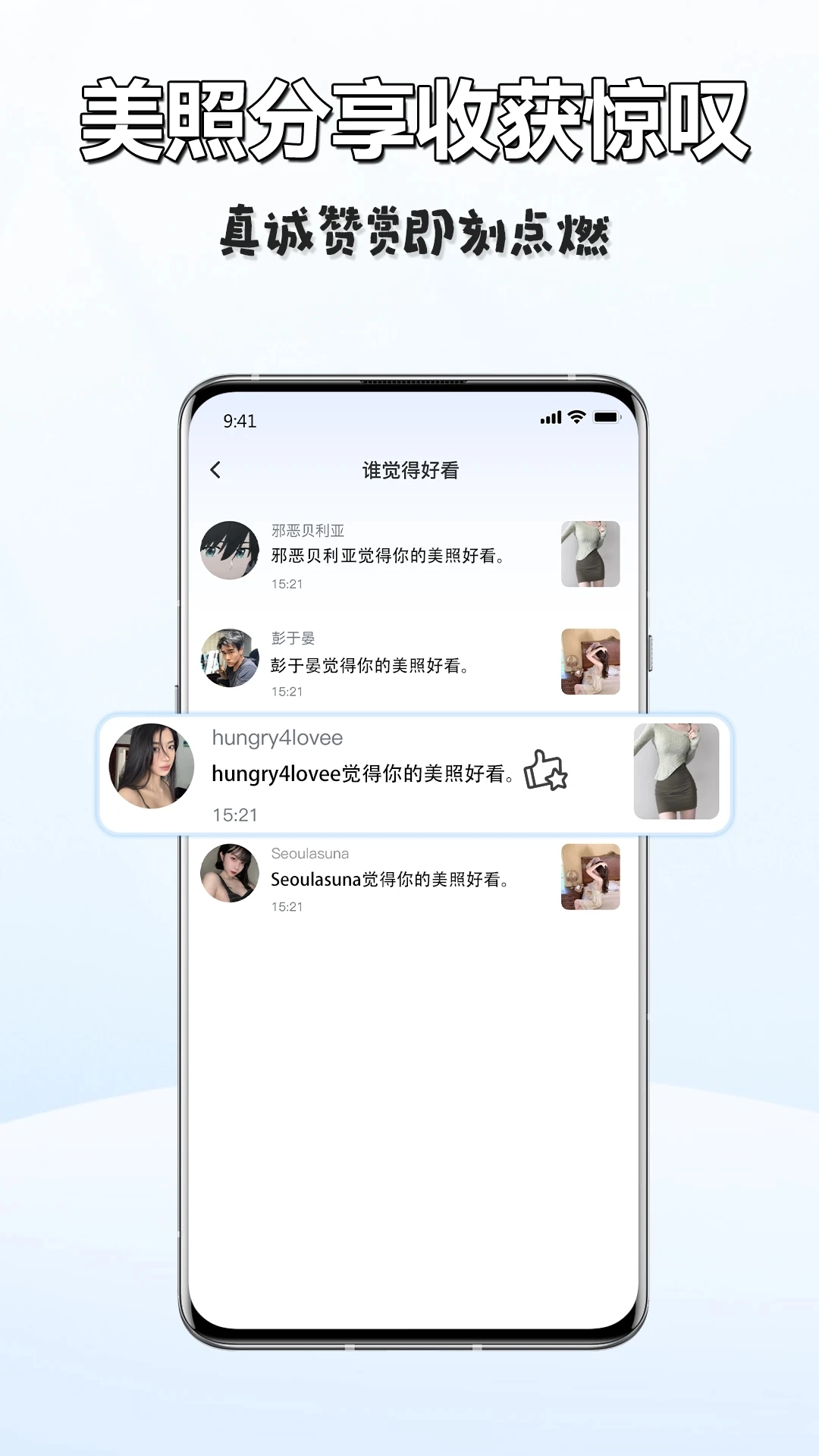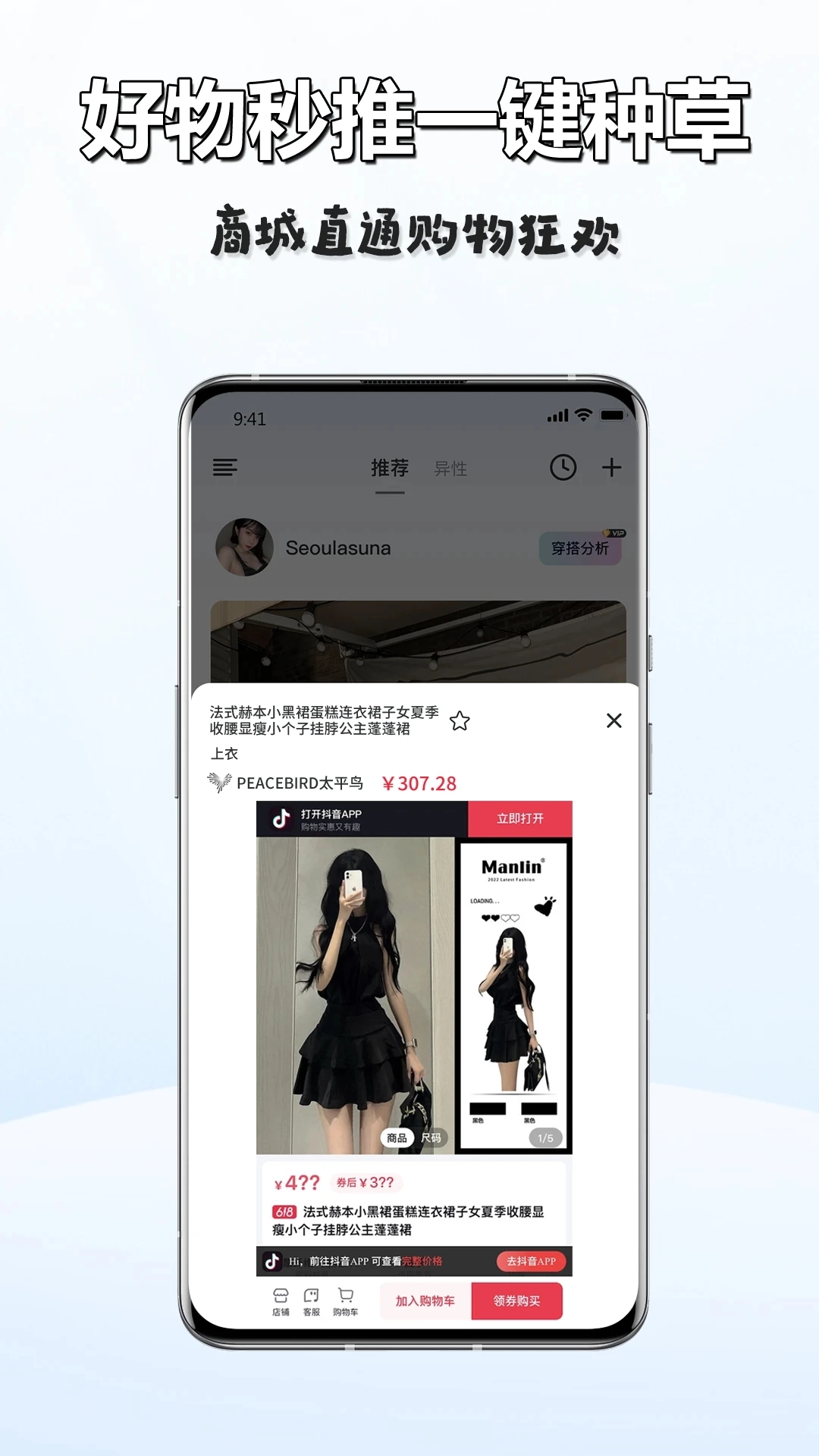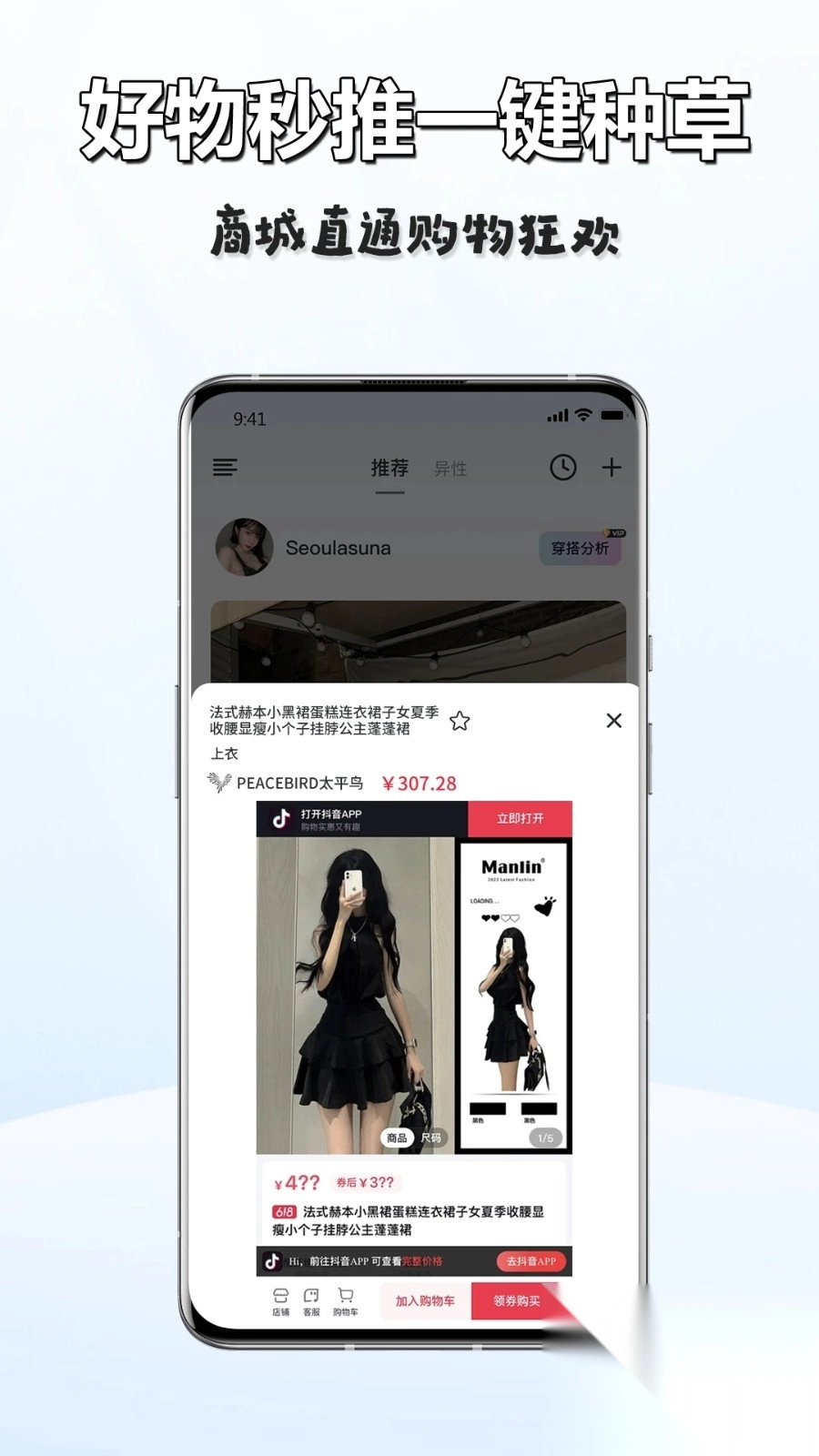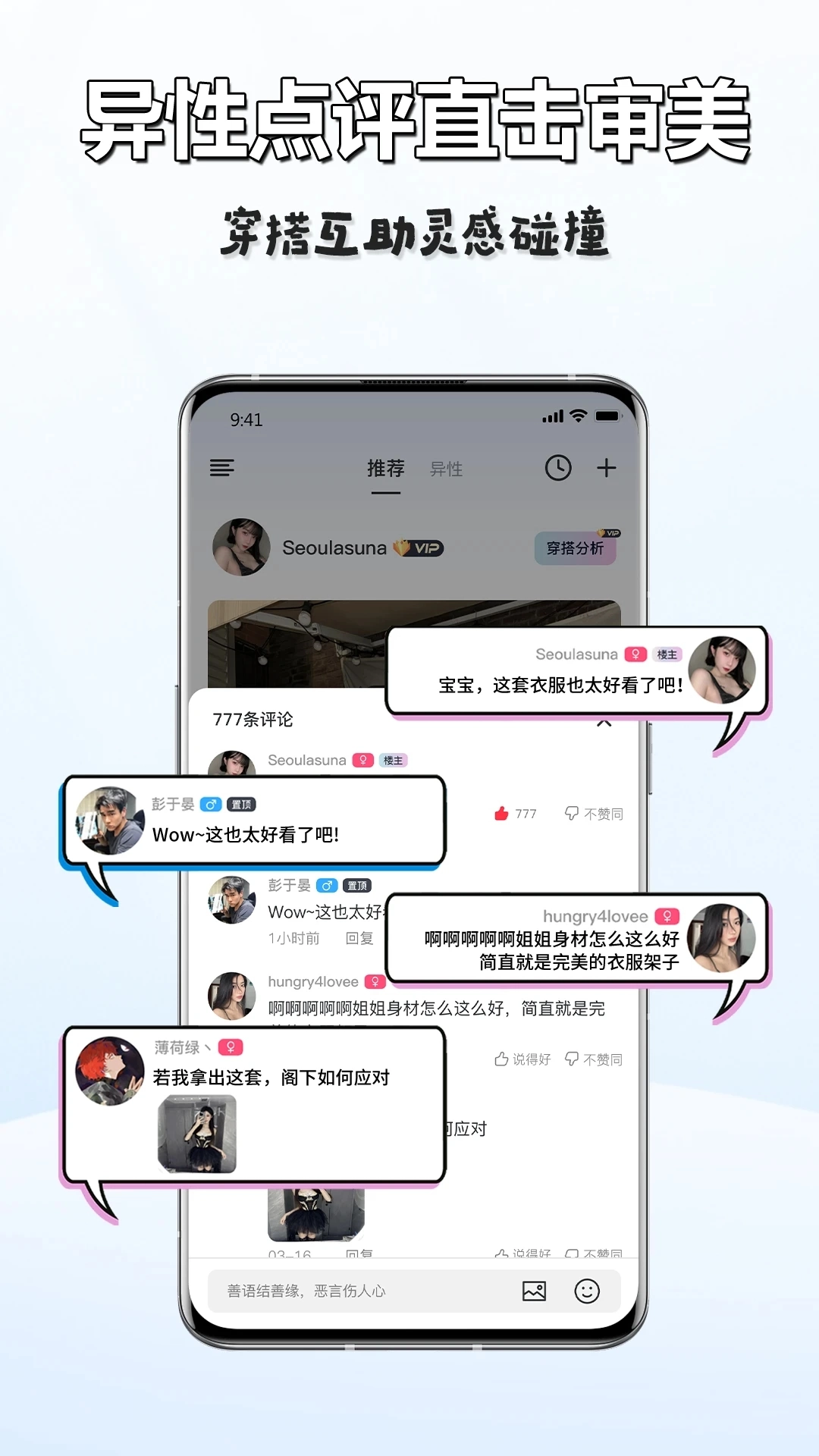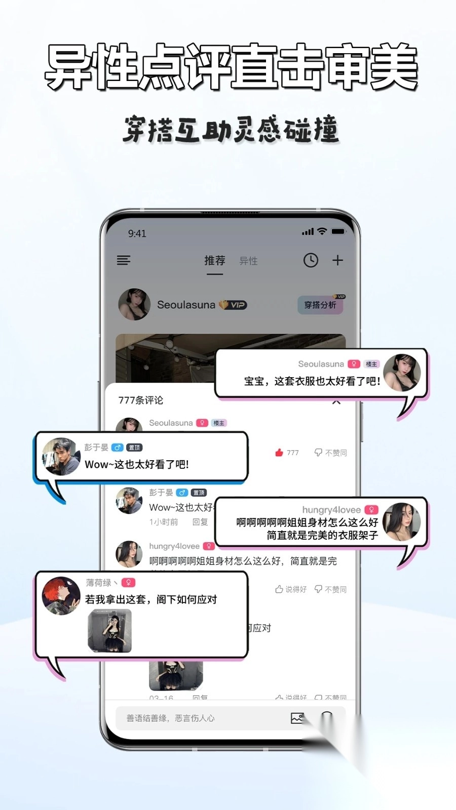 【魅力放大镜】 启动全方位美学测评:海量时尚达人在线互动,专业造型顾问实时解惑,更有特别的异性视角帮你发现隐藏魅力点。 【一键即购的魔法衣橱】 遇到心仪穿搭就点击「喜欢」按钮,瞬间直达全球商品仓库。从心动种草到下单拔草,节奏永远快人一步。