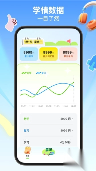 智能规划学习:依据学习进度和单词掌握程度,智能制定学习与复习方案,科学把控学习节奏。