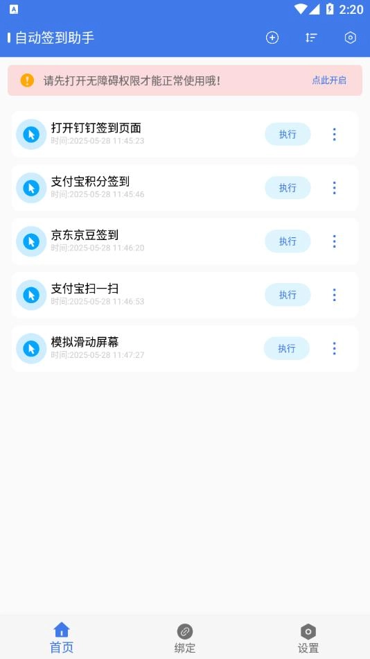 不需要繁琐的设置步骤,借助清晰明了的动作列表和悬浮球手势就能轻松完成签到操作,即使是刚接触的新手也能迅速掌握使用方法。