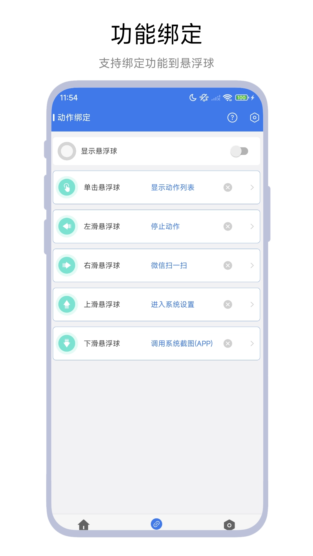 可以把签到动作、扫码功能这类操作绑定到悬浮球上,借助手势操作就能快速触发它们。
