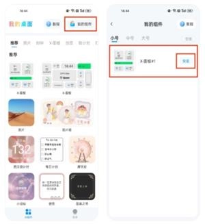 2、保存后,小组件存至首页右上方【我的组件】,可在此安装或编辑已保存的。