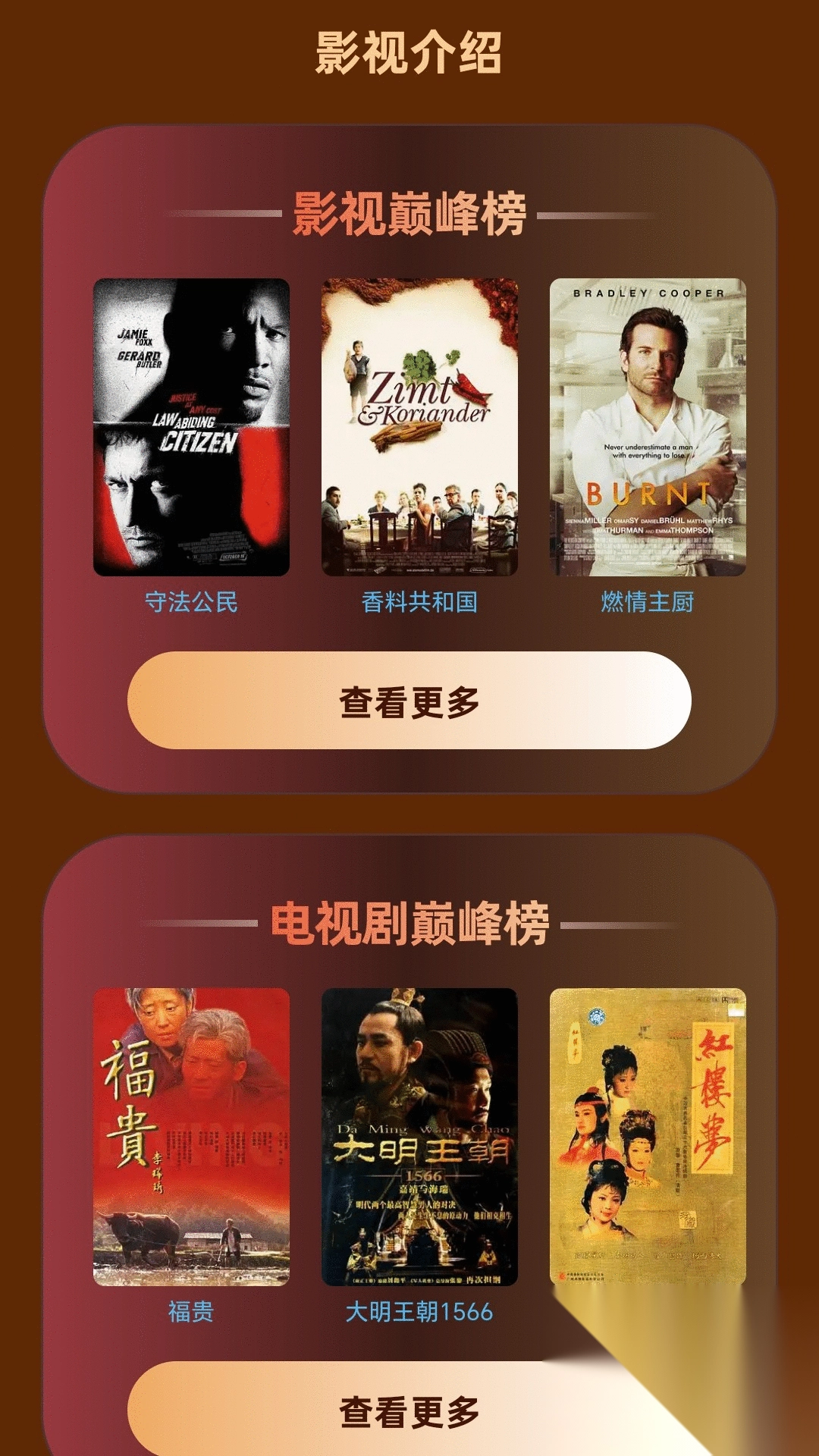 在首页能够查看影视介绍,还能及时获取影视巅峰榜与电视剧巅峰榜的相关信息。