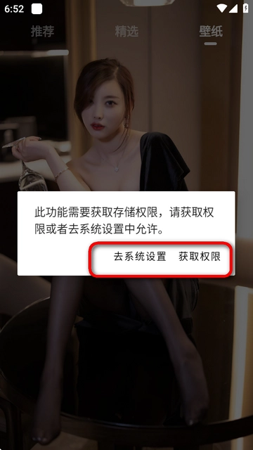 找到喜欢的图片后,长按它,系统就会弹出需要获取存储权限的提示。