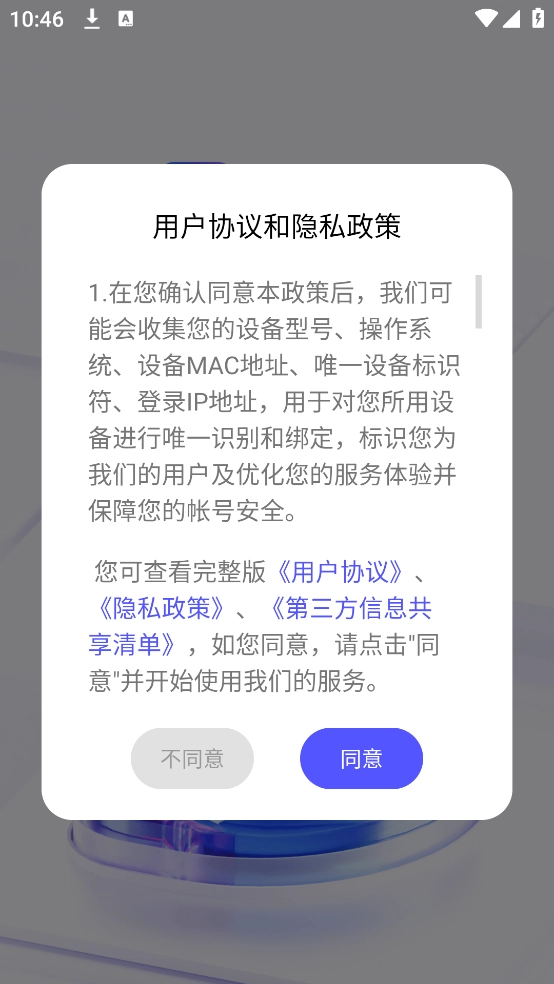 可以直接使用最新版本的软件,进入时需要先同意隐私权限。