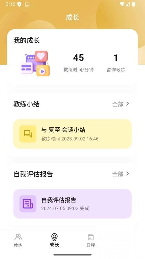 教练小结:支持查看和教练会谈的小结内容,帮助了解咨询情况,方便后续使用与跟进。